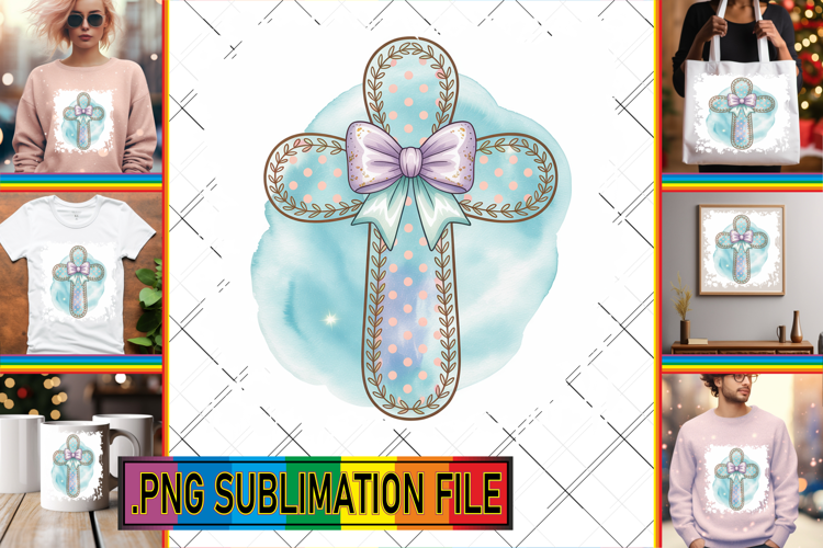 Vibrant TOTE BAG Gift PNG, Cross and Bow example image 1