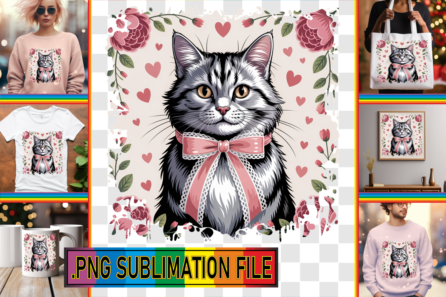 Cheerful Tote Bag Designs PNG, Valentines Cat example image 1