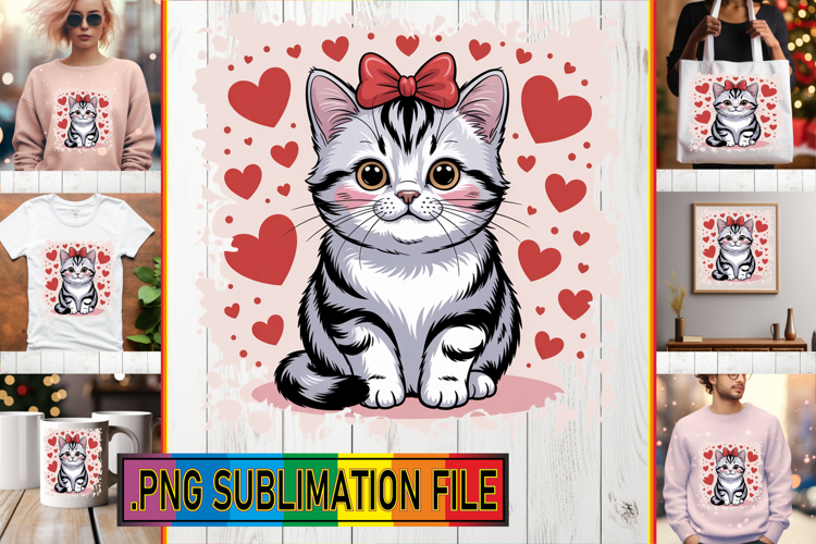 Unique Tote Bag Designs PNG, Valentines Cat example image 1