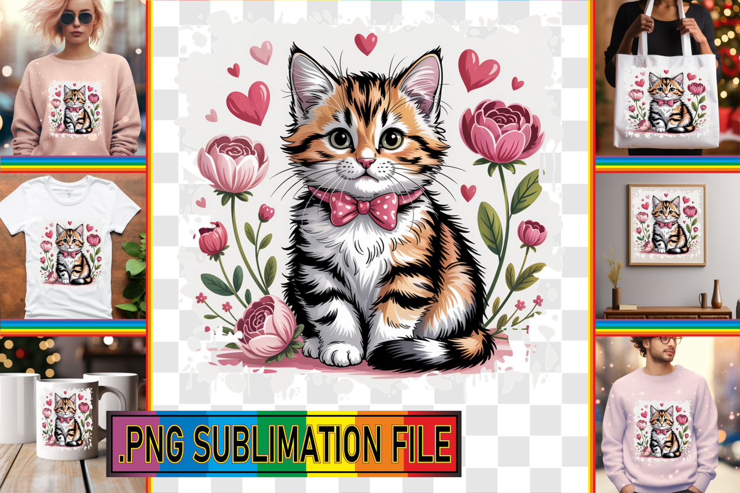 Elegant Tote Bag Ideas PNG, Valentines Cat example image 1