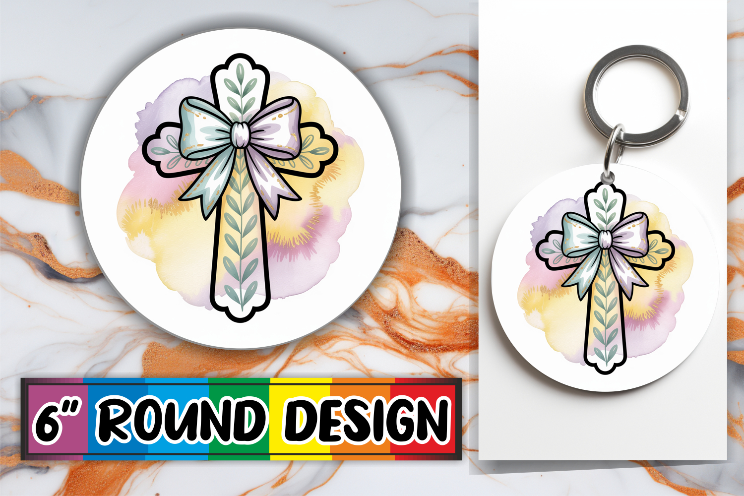 Similar Design Products to Bright Circle Keychain Design PNG, Cross and Bow