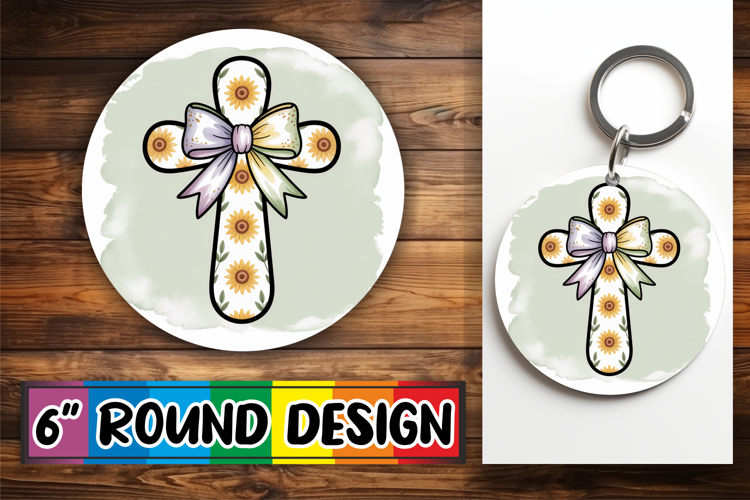 Joyful Coasters Circle PNG Style, Cross and Bow