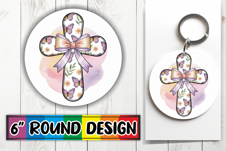 Radiant Circle Car Coasters PNG, Cross and Bow