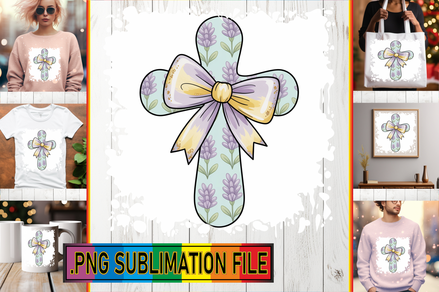VIBRANT TSHIRT DESIGN PNG Sublimation, Cross and Bow example image 1