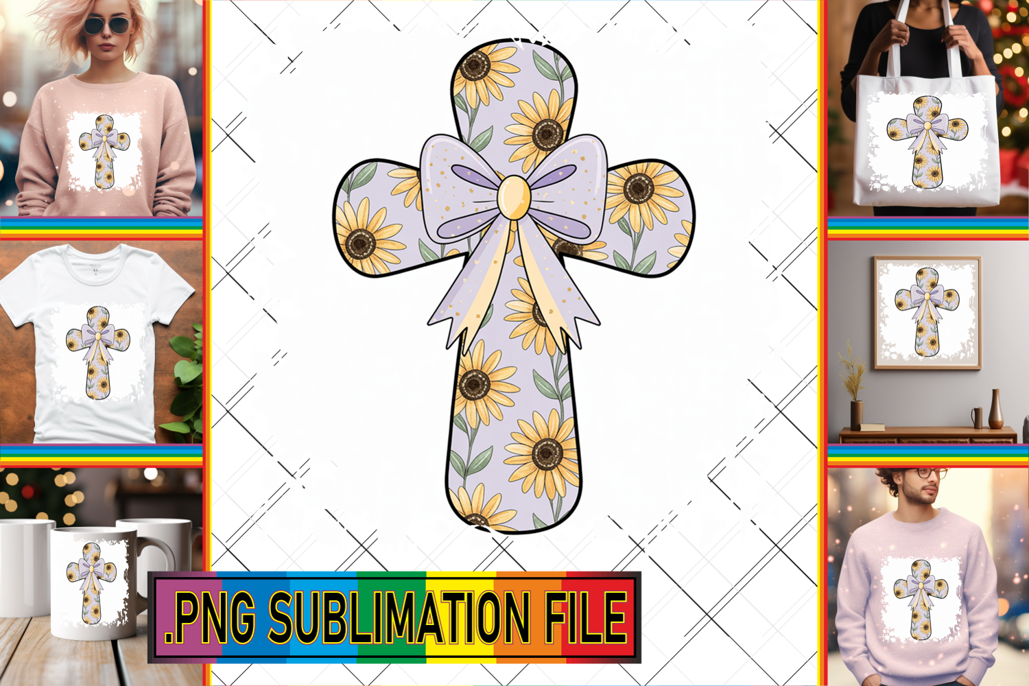 Playful PNG Design for TSHIRTS, Cross and Bow