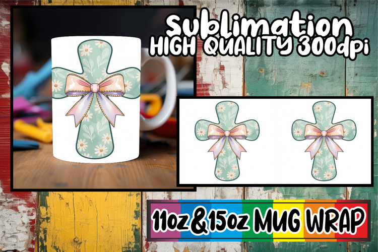Similar Design Products to Peaceful moments 11oz 15oz mug wrap, Cross and Bow