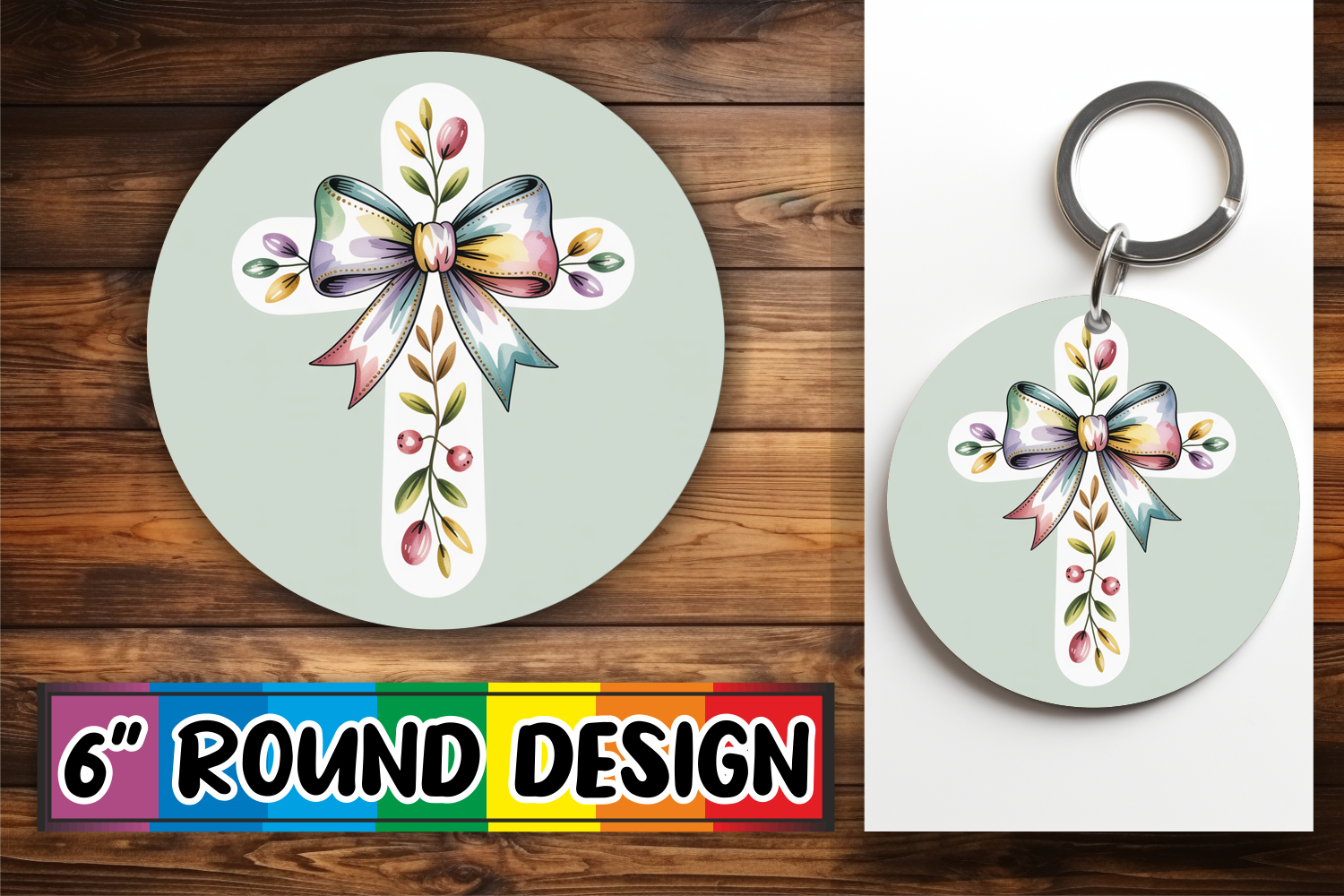 Similar Design Products to Blissful Round Ornaments Design PNG, Cross and Bow