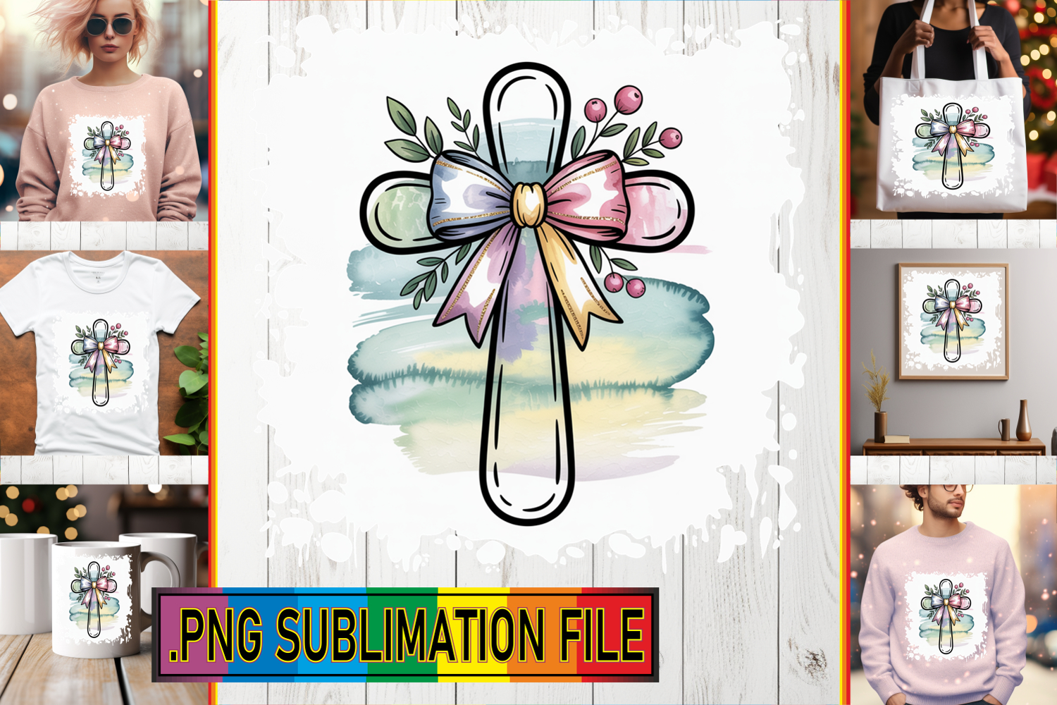 Similar Design Products to Radiant TSHIRT Gift Ideas PNG, Cross and Bow
