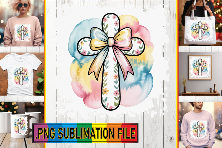 Similar Design Products to VIBRANT TSHIRT Designs PNG, Cross and Bow