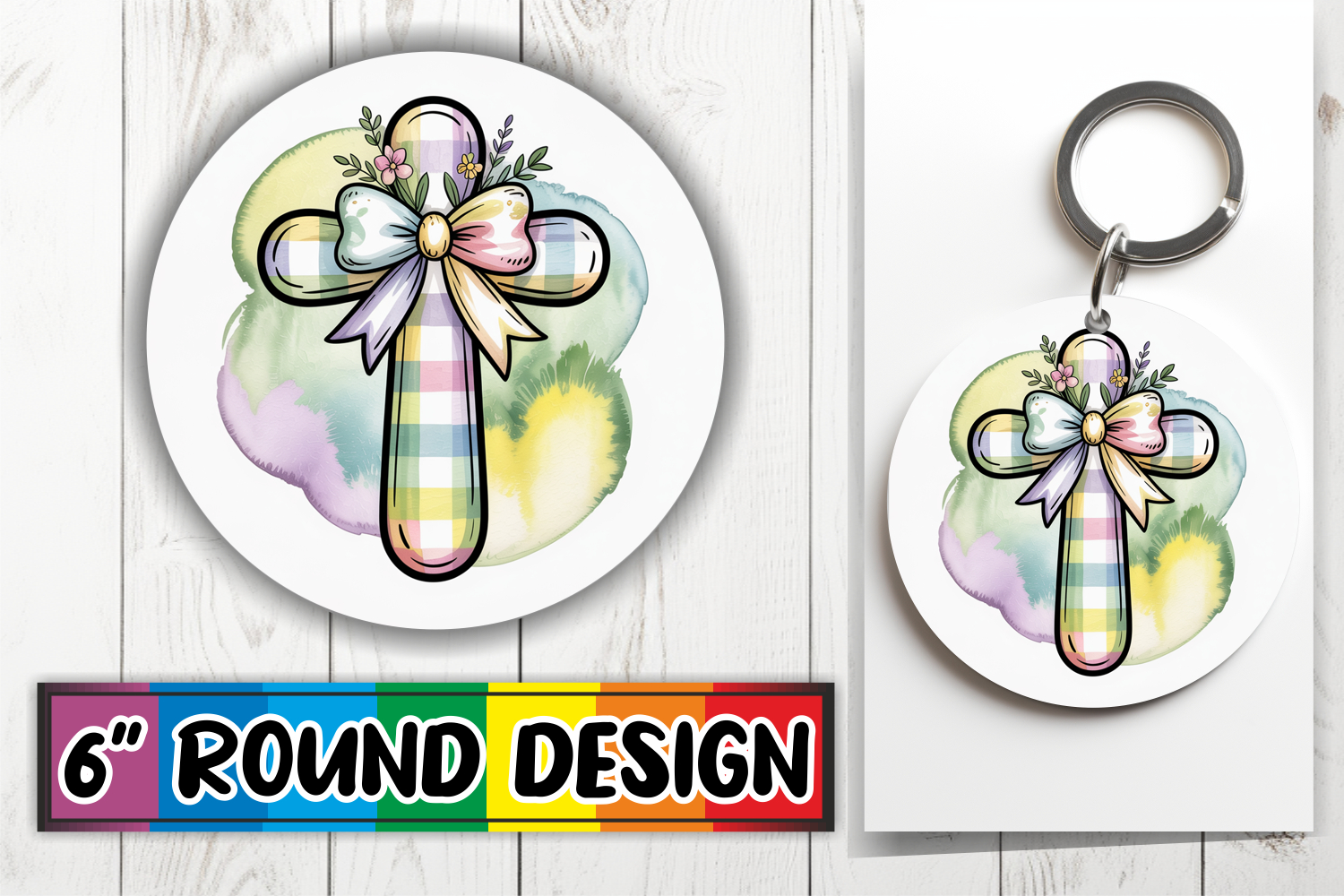 Similar Design Products to Radiant Round Car Coaster Sublimation, Cross and Bow