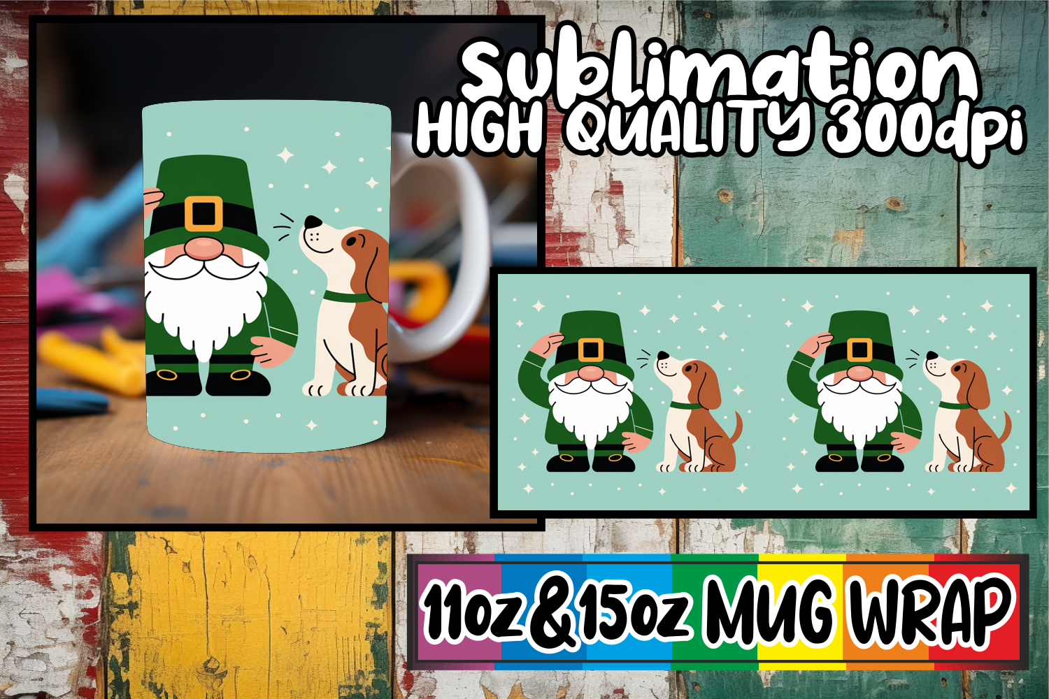 Cheerful thoughts 11oz 15oz sublimation wrap, St Patricks