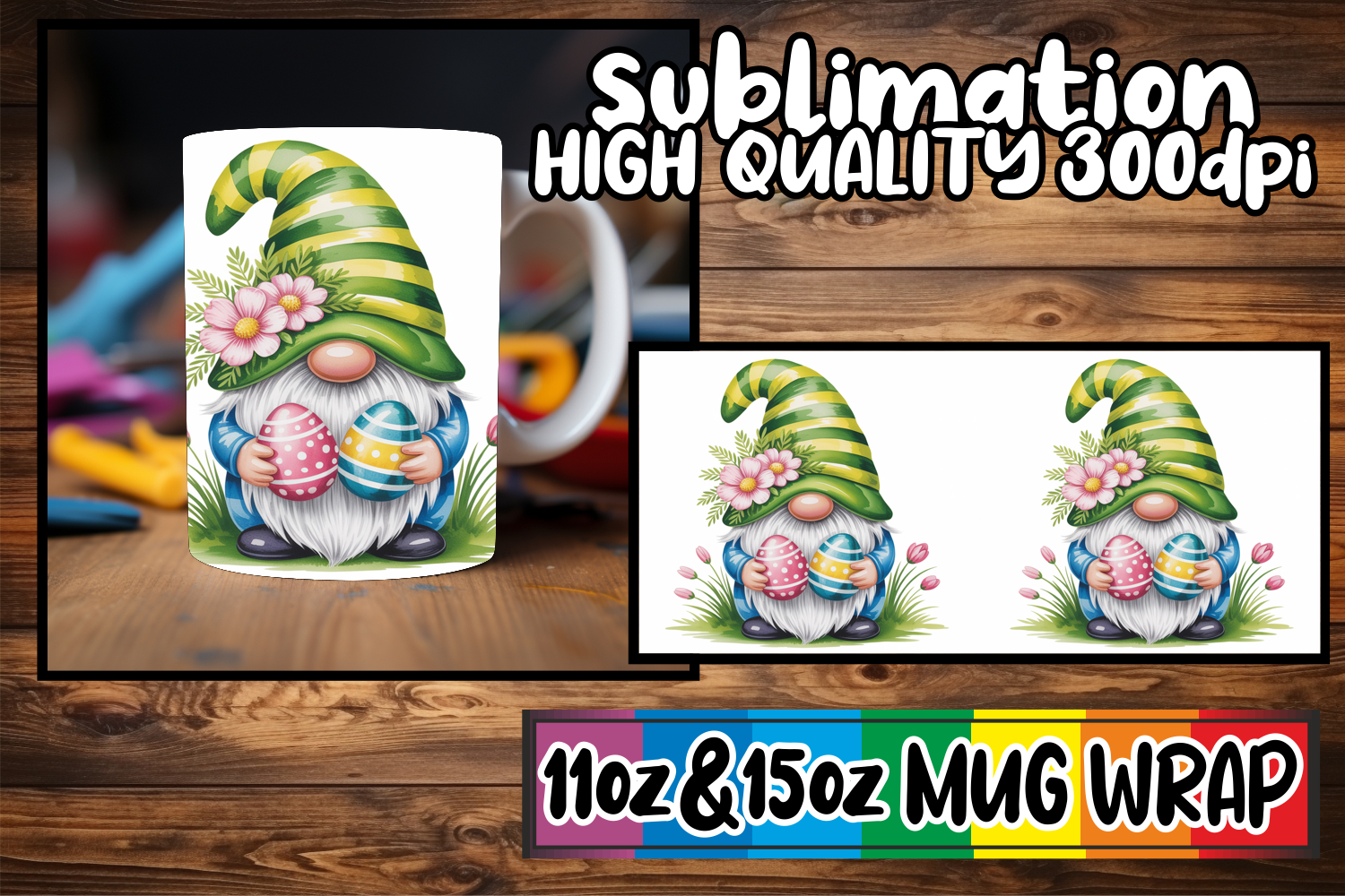 Blissful adventures 11oz 15oz sublimation wrap, Easter Gnome
