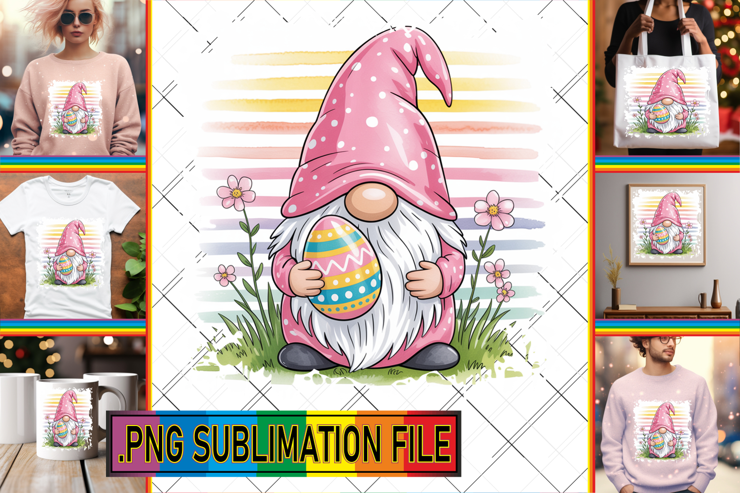 Similar Design Products to Bright TOTE BAG Sublimation Magic, Easter Gnomes