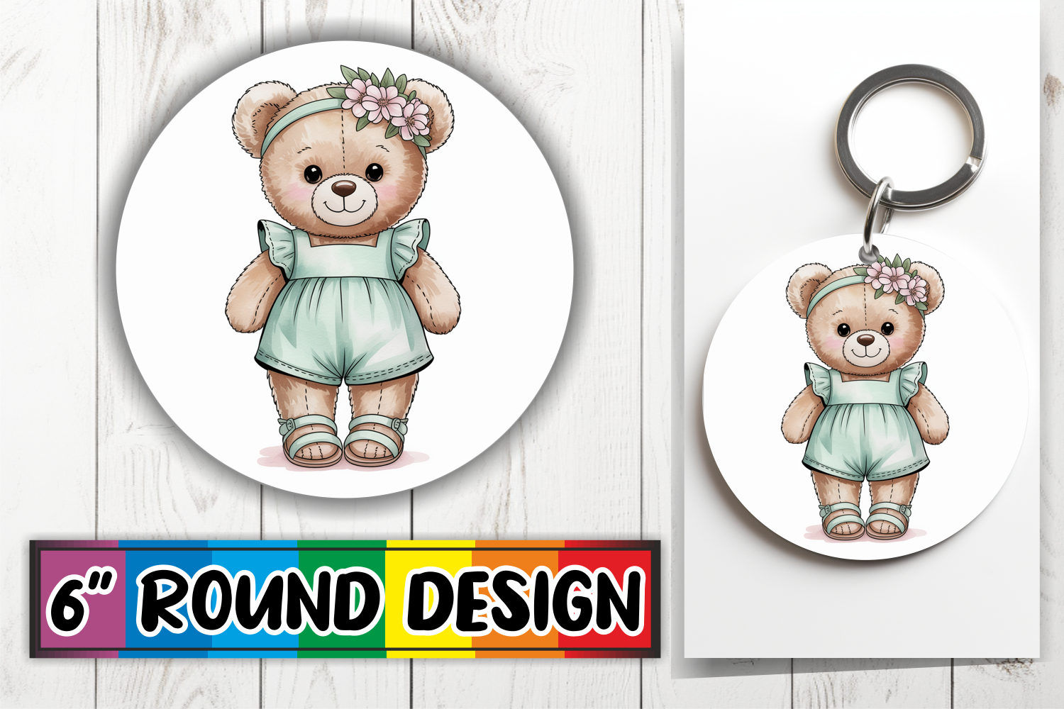 Teddy Bear Png Watercolor Flower Png Keychain Sublimation Sublimation Ornaments Valentines Keychain Boho Sublimation Png Round Ornaments Design Doddle Heart Boho Animals Png Boho Watercolor Animals