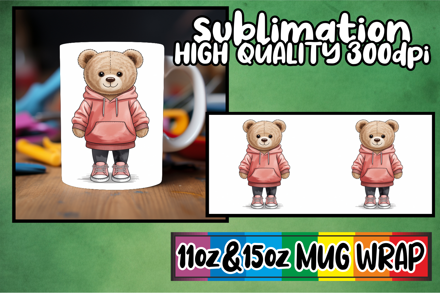 Whimsical evenings 11oz 15oz sublimation wrap, Teddy Bear