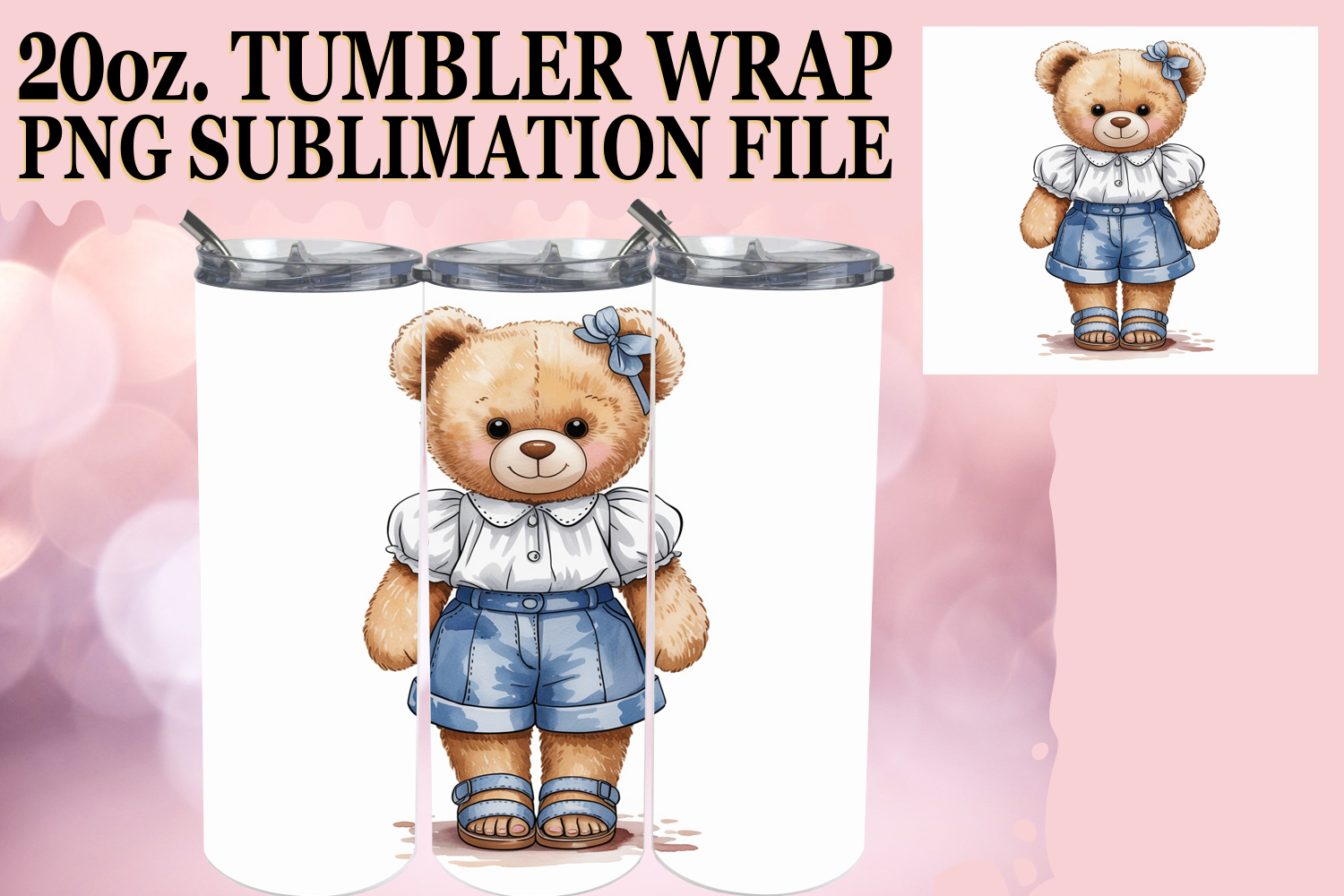 Serene Days 20oz tumbler wrap, Teddy Bear example image 1