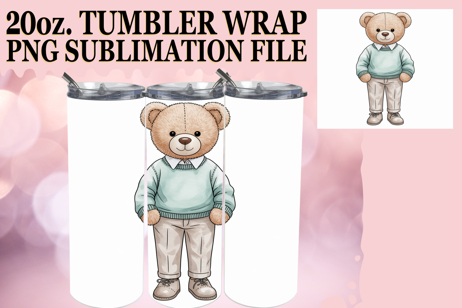 Bright Nights 20oz tumbler wrap, Teddy Bear example image 1