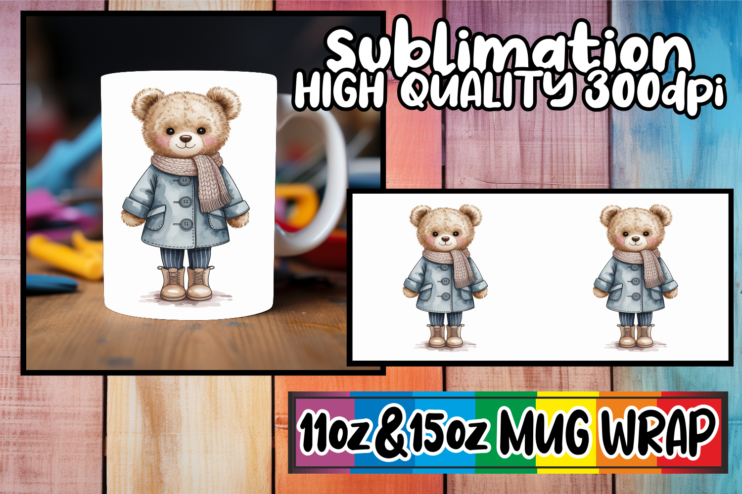 Lively spirit 11oz 15oz mug wrap, Teddy Bear example image 1