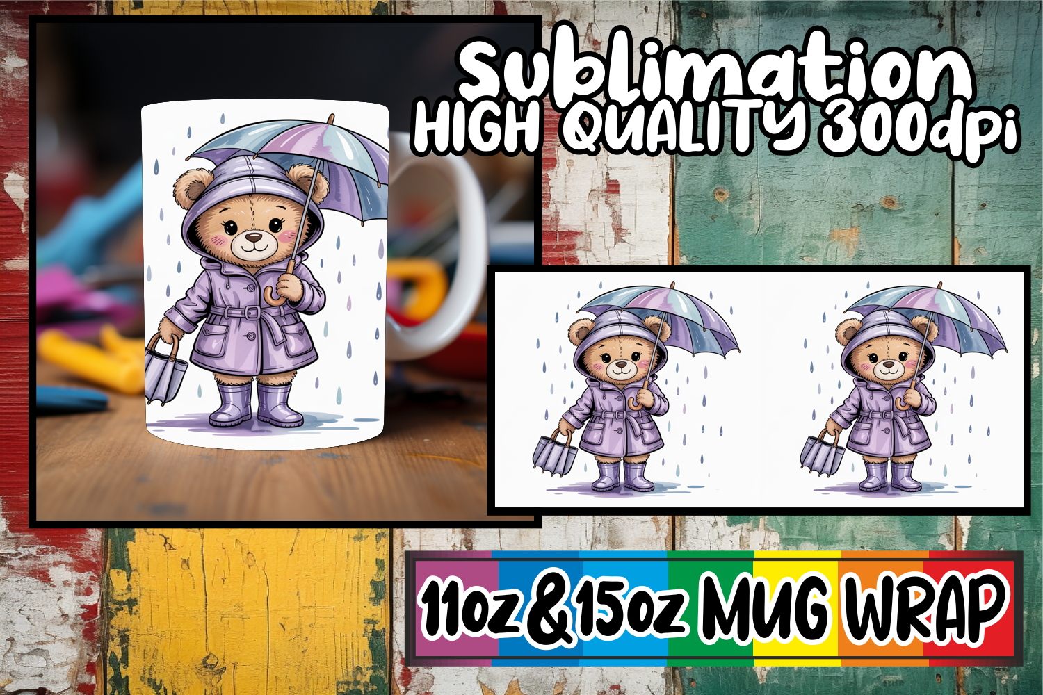 Tender love 11oz 15oz mug wrap, Teddy Bear example image 1