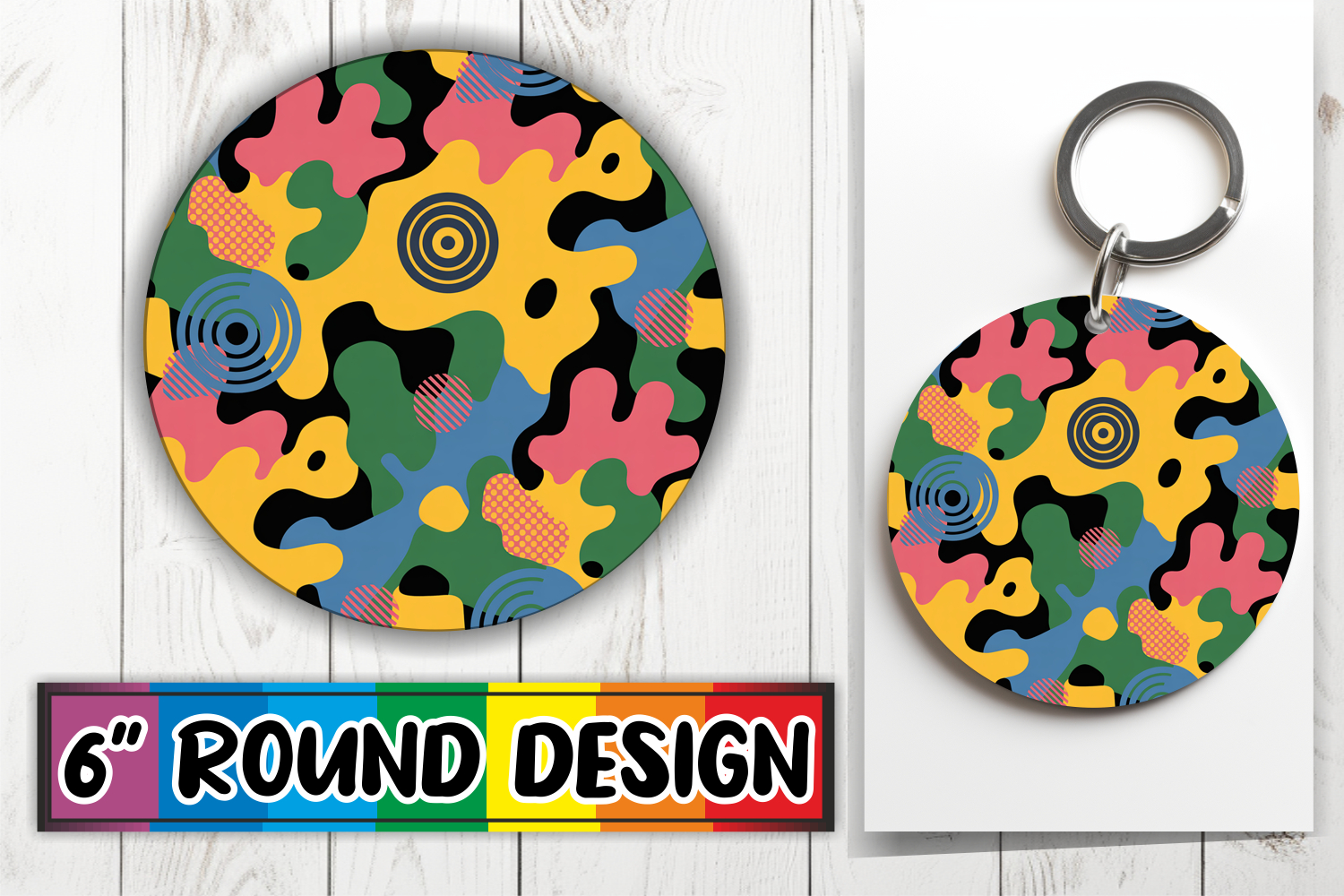 Bright Keychain Sublimation Circle, Funky Pattern example image 1