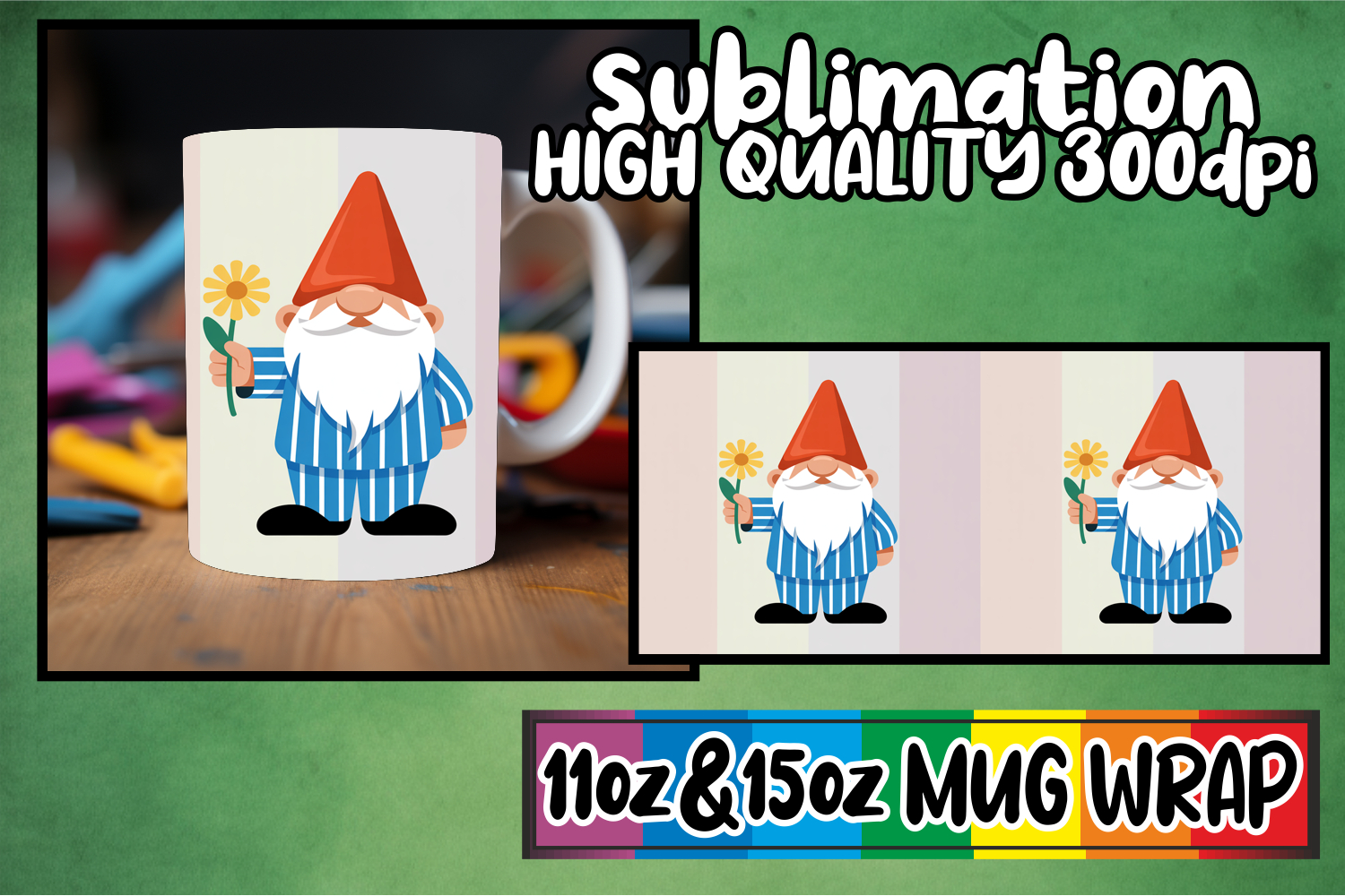 Similar Design Products to Serene mornings sublimation mug wrap, Gnomes