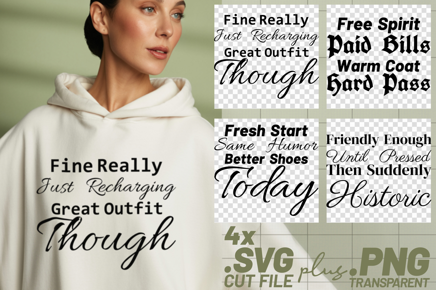 This bundle is for anyone who appreciates a good dose of humor! These four designs feature witty quotes perfect for shirts, mugs, or any project where you want to add a touch of personality. Here's a look at what's included:
