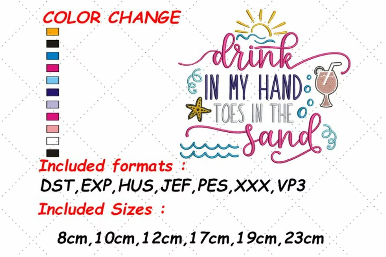 Summerembroidery Pesfiles Embroiderysayings Vacationembroidery Summerfile Summersayings Beachparty Drinkingembroidery Drinkingdesign Cutesummer