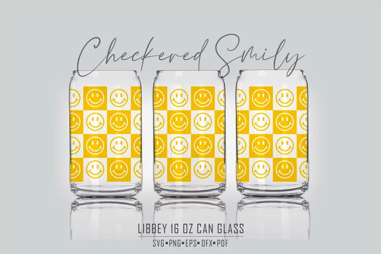 Smiley Face Glass Wrap Svg, Checkered Smily Can glass wrap,