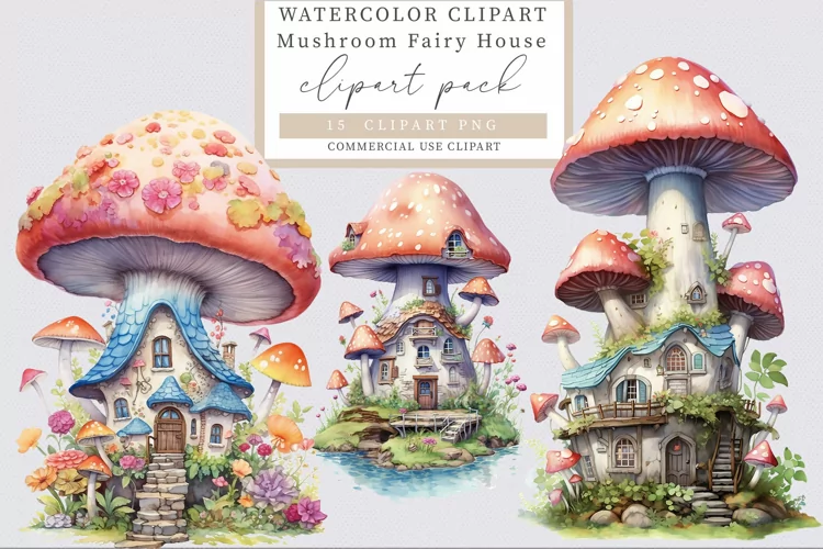 Fantasy Bundle Fairy Mushroom House Sublimation Fairy Clipart Mushroom House Fairy House Mushroom Home