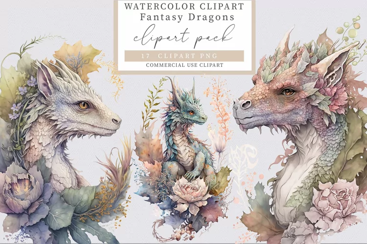 Similar Design Products to Fantasy dragons clipart, Dragons clipart, Floral Dragon