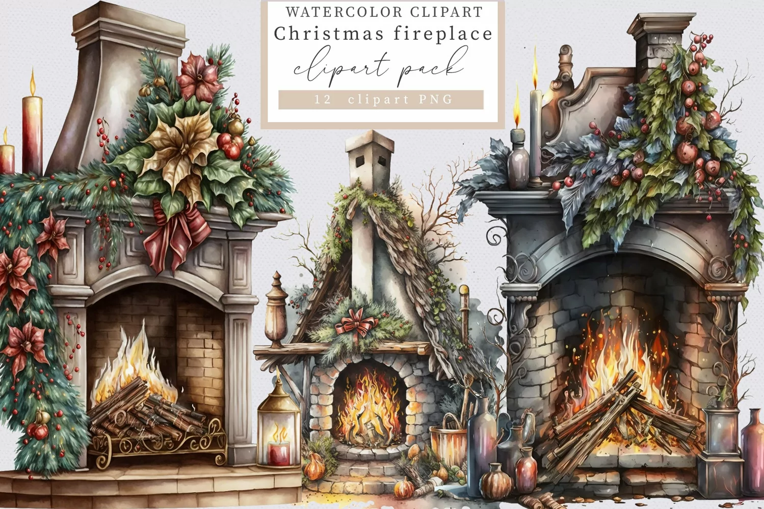 Fireplace clipart, Christmas clipart example image 1