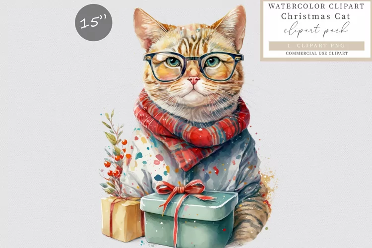 Illustration Watercolor Cute Clipart Cat Kitten Sublimation Cat Clipart Animals Clipart Cat Christmas Clipart