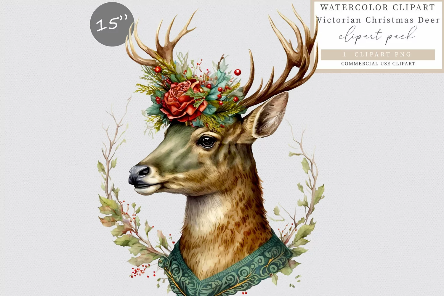 Similar Design Products to Victorian clipart, Christmas deer clipart, Deer sublimation