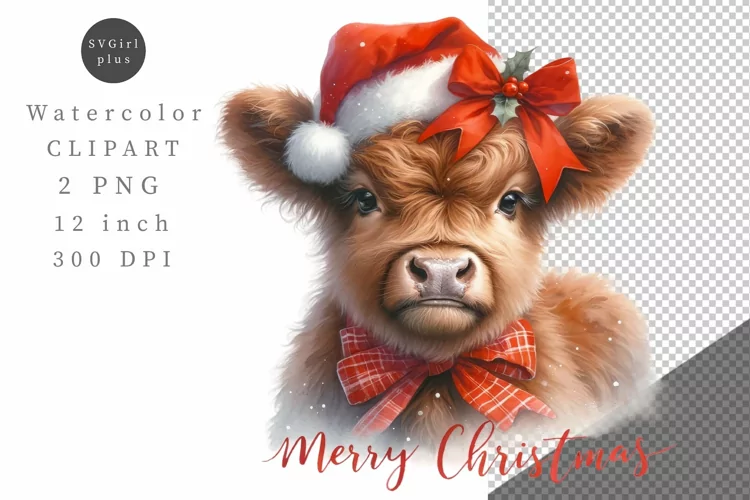 Christmas Watercolor Clipart Winter Clipart Cow Christmas Clipart Cute Clipart Cow Clipart Christmas Sublimation Cow Sublimation Highland Cow Png
