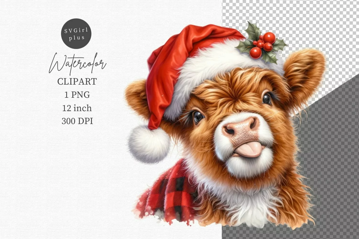 Christmas Cow clipart, Highland cow clipart, example image 1