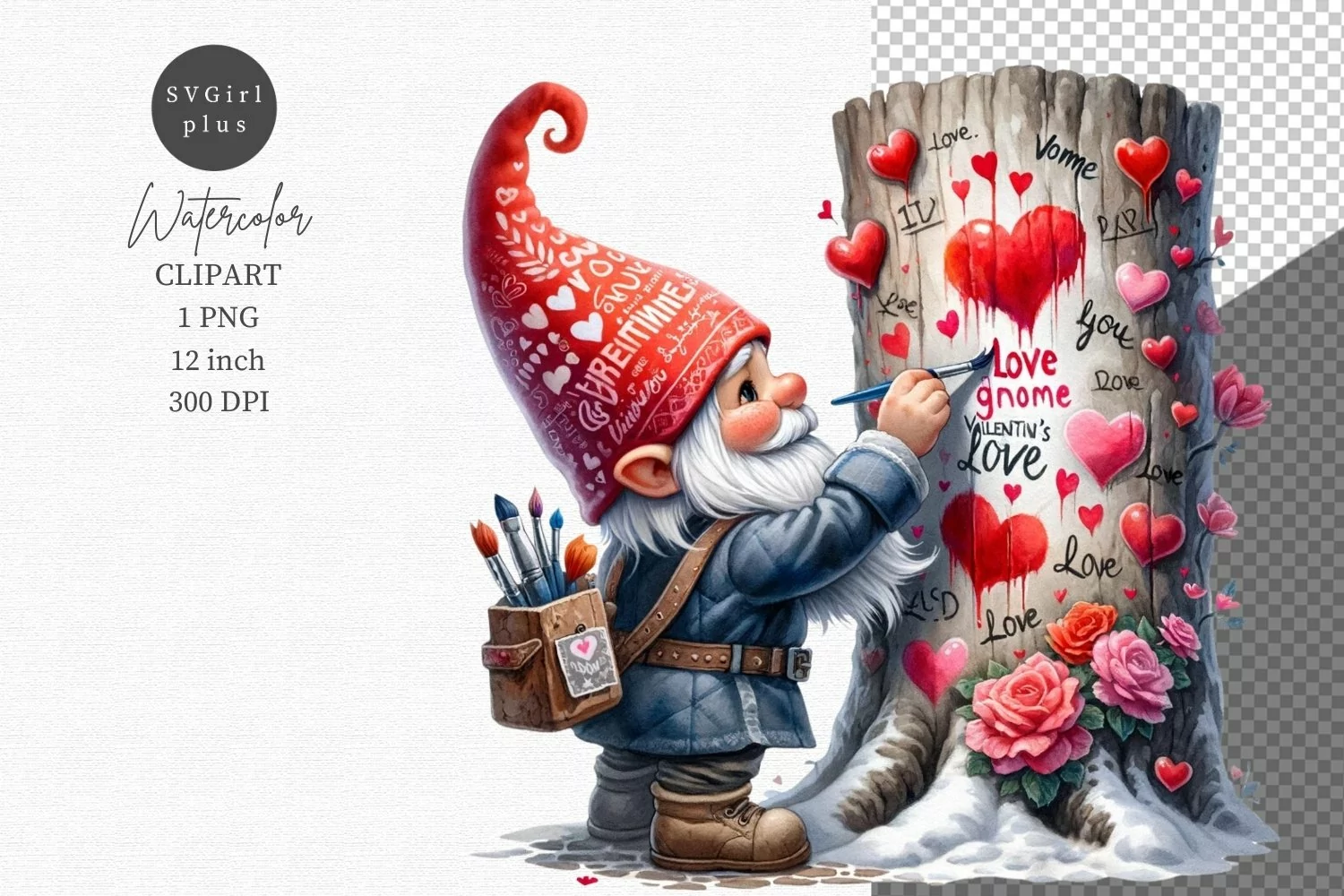 Similar Design Products to Gnome painting, Gnome clipart, Valentines Day.