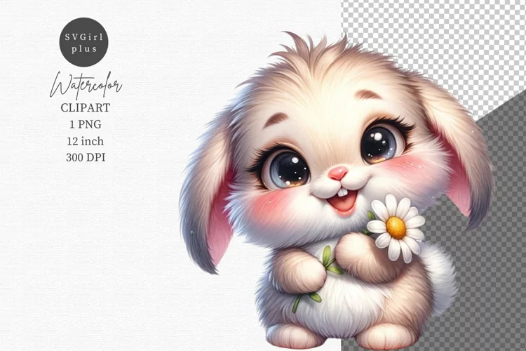 Similar Design Products to Baby bunny with daisy clipart, Easter clipart, Spring clipar