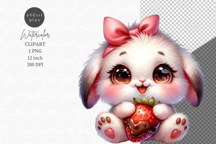 Baby bunny with strawberry clipart, Valentines Day example image 1