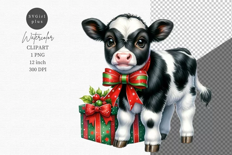 Similar Design Products to Christmas calf clipart, Cow clipart, Watercolor clipart,