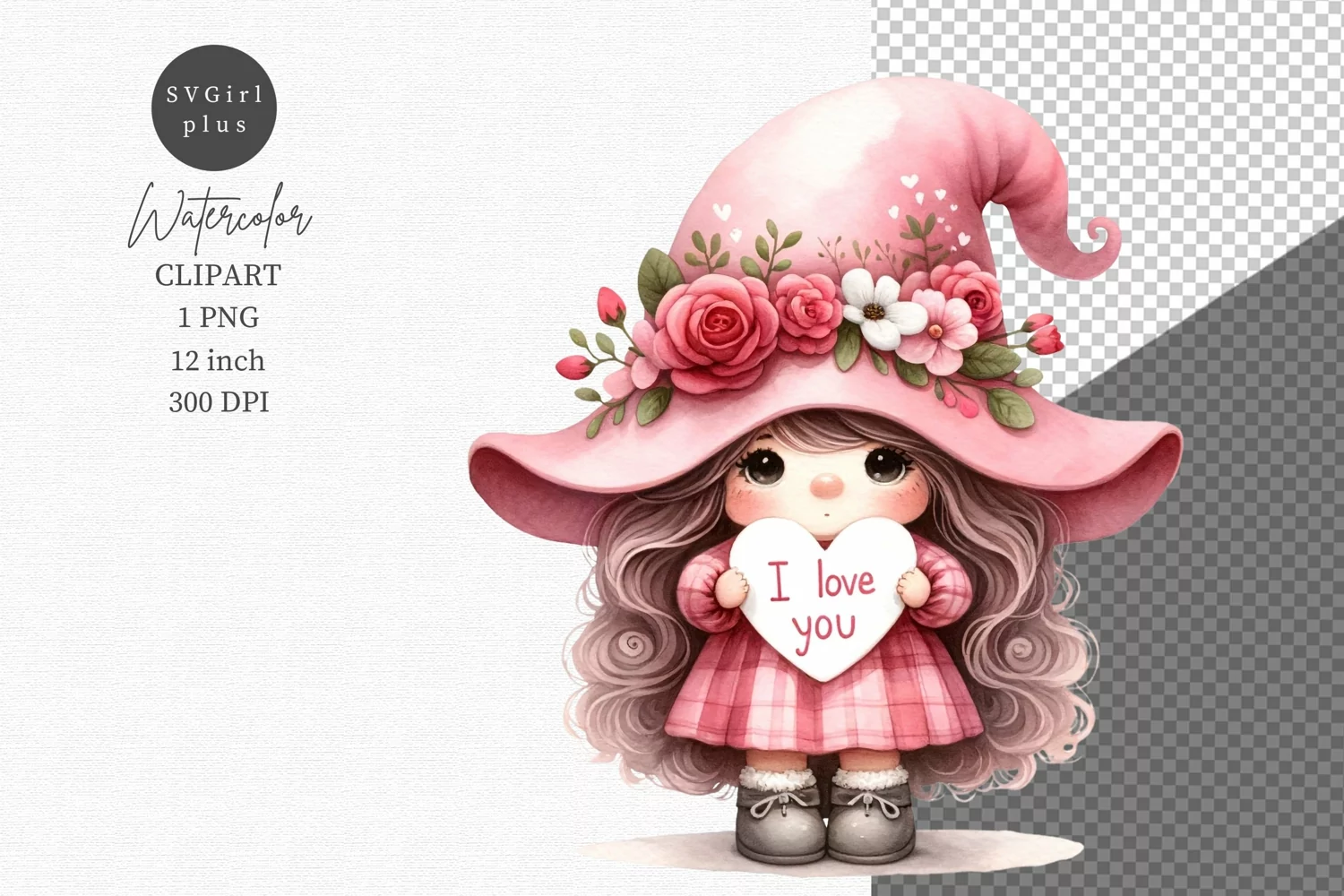 Valentines day clipart, Gerl gnome