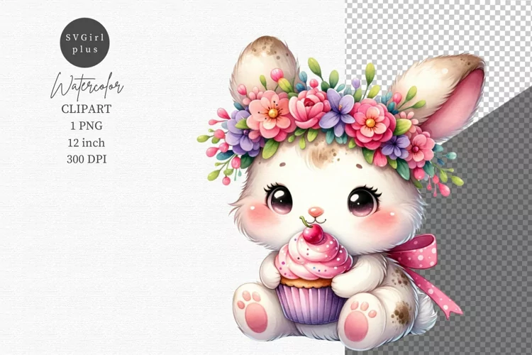 Similar Design Products to Bunny clipart, Bunny holding cupcake, Birthday