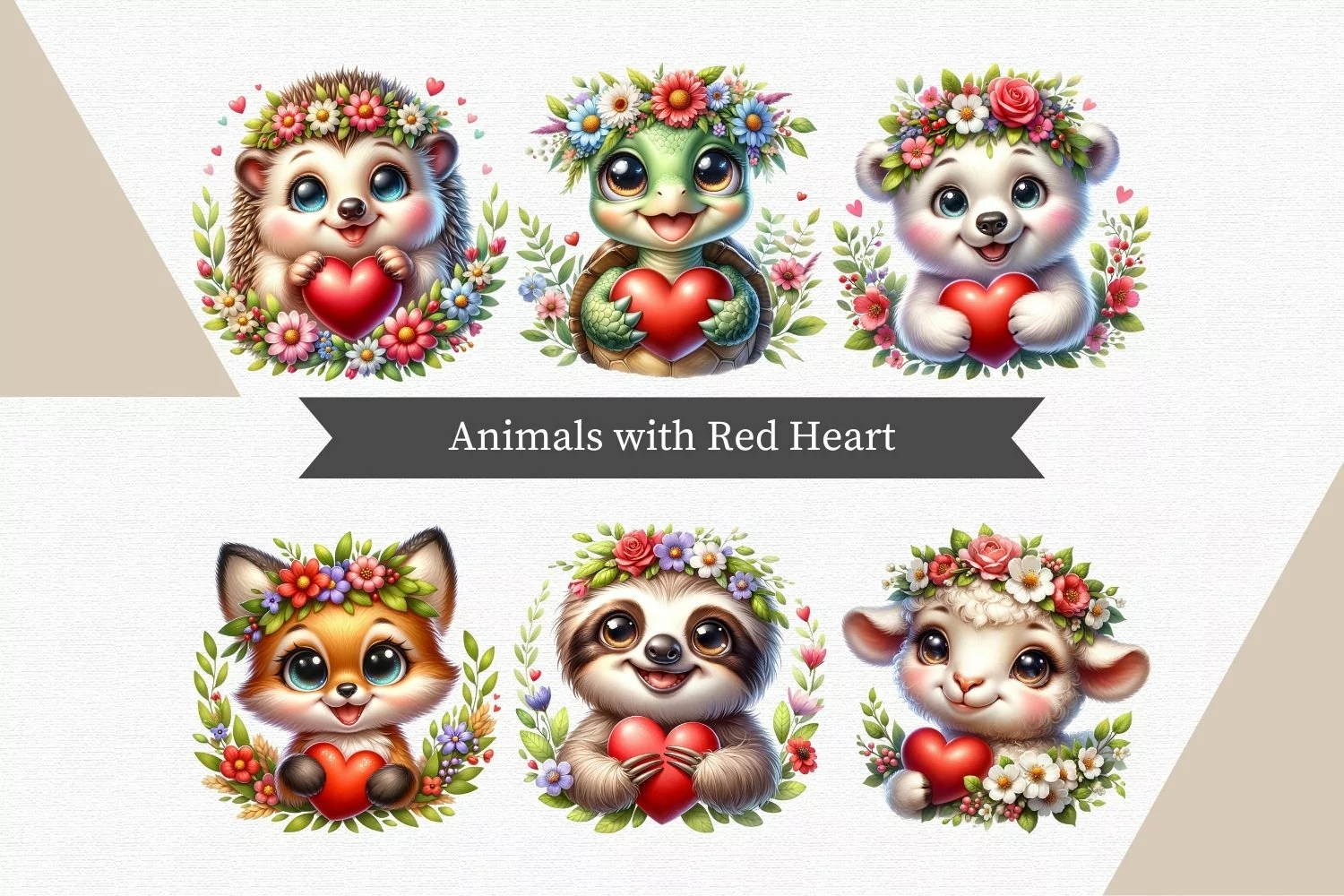 Similar Design Products to Valentines day clipart, Animals with red heart