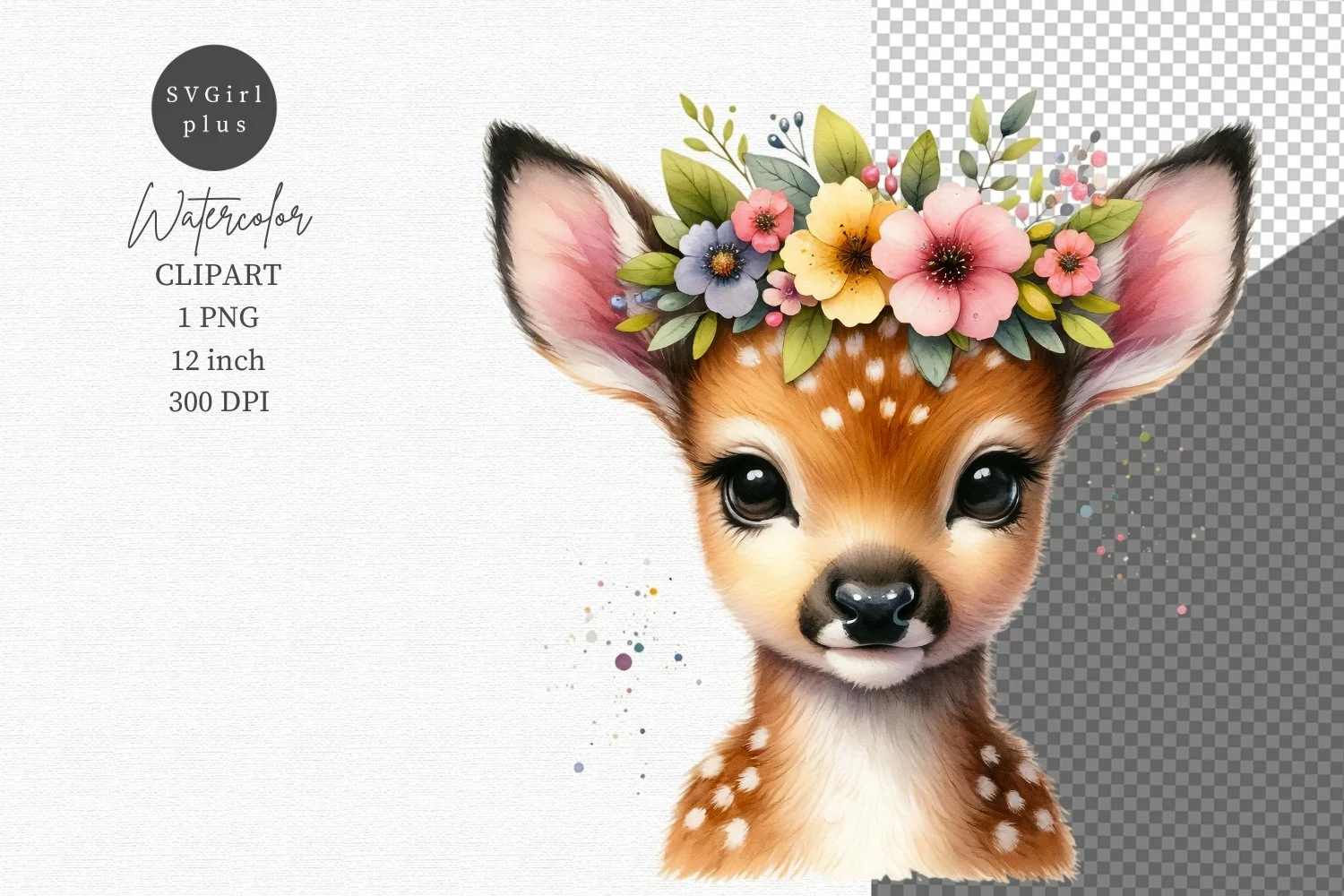 Similar Design Products to Baby deer clipart, Watercolor clipart, Woodland animals