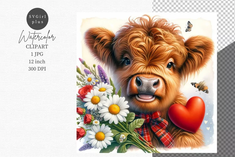 Valentine Valentines Digital Digital Paper Clipart Valentines Day Jpg Sublimation Junk Journal Highland Calf