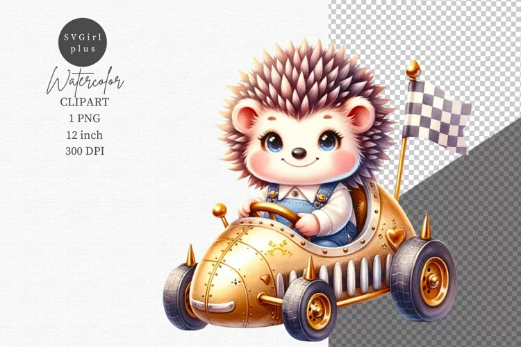 Watercolor Kids Clipart Car Nursery Hedgehog Sublimation Hedgehog Clipart Sublimation Design Racing Baby