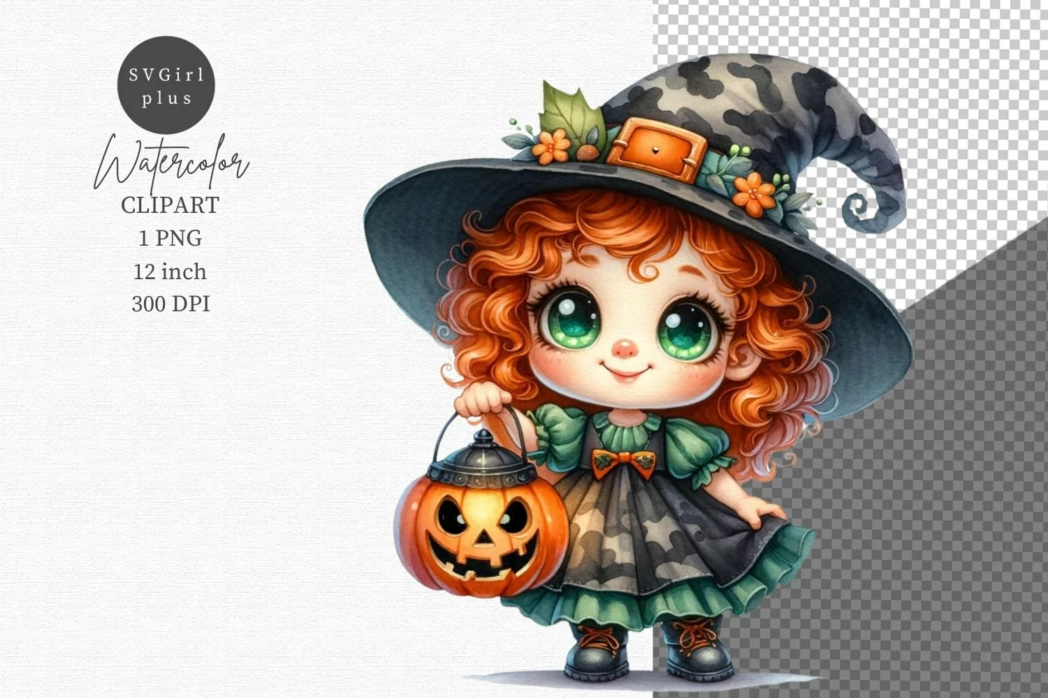 Watercolor Gothic Halloween Clipart Witch Halloween Clipart Sublimation Witch Clipart Kids Halloween Sublimation Design