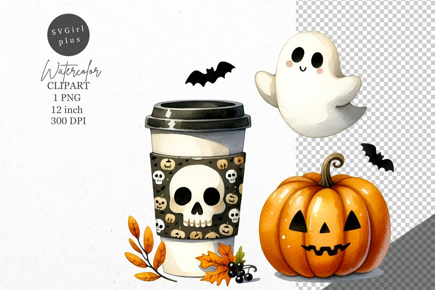 Watercolor Coffee Halloween Clipart Ghost Halloween Clipart Sublimation Kids Halloween Sublimation Design Halloween Sublimation