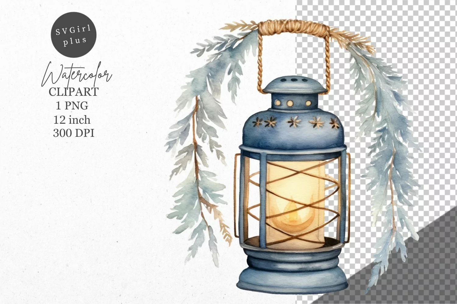 Christmas clipart, Lantern clipart, Blue Christmas