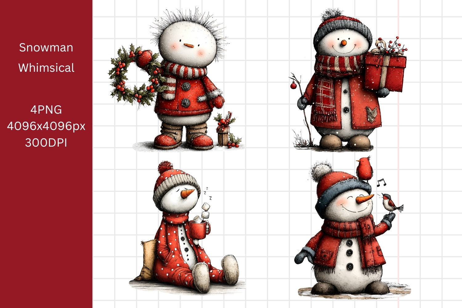 Similar Design Products to Watercolor Snowman Clipart, Whimsical,