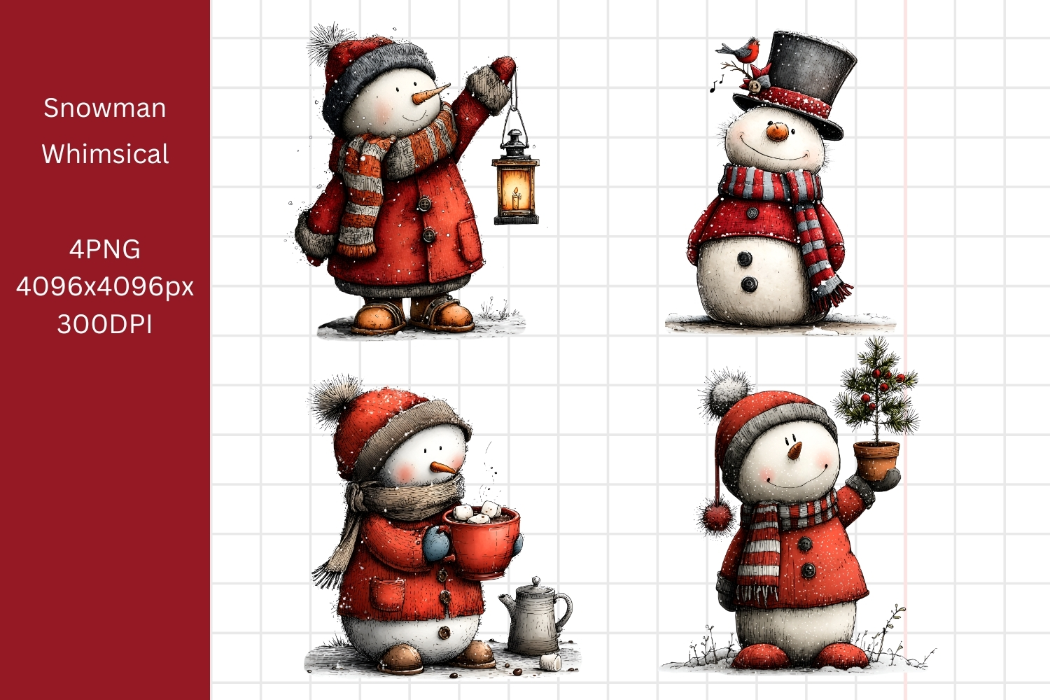 Similar Design Products to Watercolor Snowman Clipart, Whimsical,